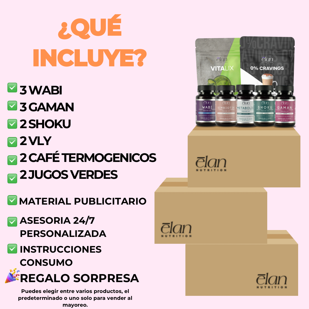 - 3 WABI, 3 GAMAN, 2 SHOKU, 2 VLY, 2 CAFÉ TERMOGENICO, 2 JUGOS VERDES, nuestros suplementos más vendidos.